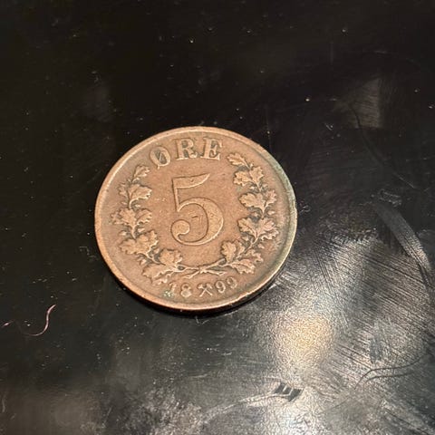 Norsk 5 øre mynt 1876