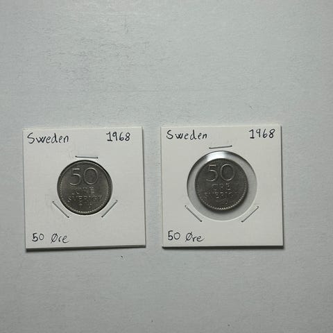Myntene er i plastlommer og kan selges enkeltvis brett til kr. 9,-