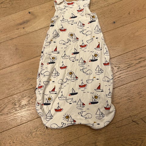 H&M barn sovepose i bomull, størrelse 92, farge grå, unisex. Soveposen er laget i bomullsmateriale og passer for barn i denne størrelsen og kjønn.