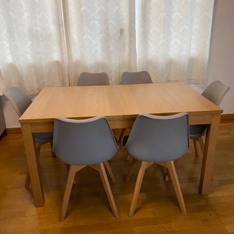 Spisebord med seks stoler selges billig.