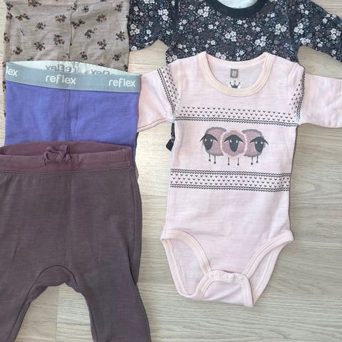 Pent brukte og noen helt ubrukte klær i hovedsak ull fra kjente merker som Lil’Atelier, Hust&Claire, Refleks.