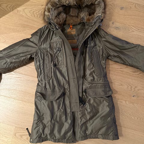 Lekker gråfarge og pent design på kåpen. Stilig design på kåpen. Avtagbar pels rundt hetten og avtagbar pelskant rundt halsen.
