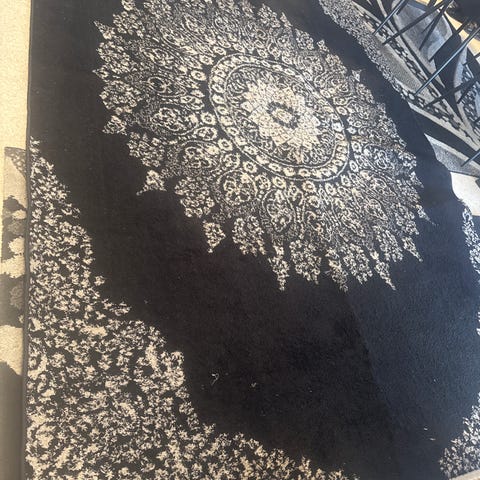 Rundt teppe 160 cm.i svart å hvitt.