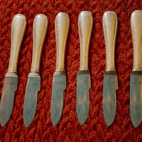 Knivsettet er i svært pen stand, lite bruksmerker. Et nydelig sett som gjør seg på bordet.