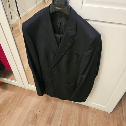 Tiger of Sweden Dane blazer i størrelse L / 52 for herre. Jakken er grå og laget av ullmateriale. Den har en klassisk dobbelspent design med flere knapper på fronten og innerlommer for oppbevaring.
