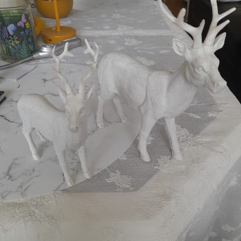 Veldig fin hjort, gull/brunaktig farge 75 cm høy.