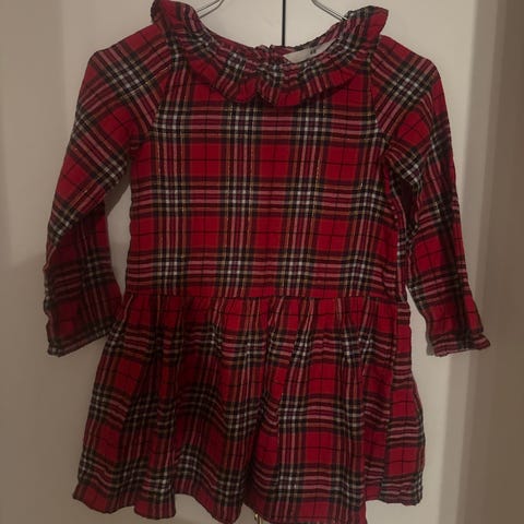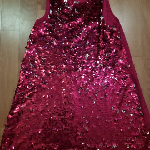 H&M rød velour kjole i størrelse 134/140. Kjolen har lange ermer skjørt med glitrende detaljer.