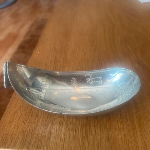 Sett med 6 teskjeer laget av 925 sterling sølv med detaljer i 24 karat gull og emalje. Hver skje har håndmalt design som viser norske bunader. Skjeene leveres i en original oppbevaringseske.