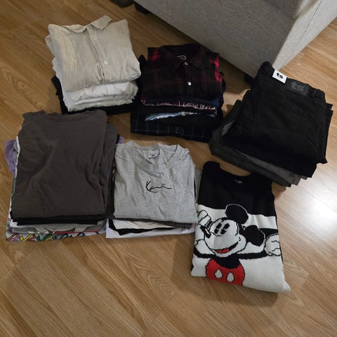 Div lommer i front, innerlommer, ribbestrikkede mansjetter, hette og alt i orden.
