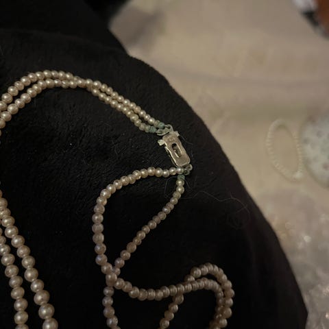 perlekjede, perler, to rader, vintage smykke, klassisk smykke, elegant smykke, tidløst smykke, sølvlås, 830S, Astri Holthe, mestermerke, norsk sølv, håndverk, kvalitetssmykke, dame smykke, fest smykke, hverdag smykke, bryllupssmykke, gaveidé, luksuriøst smykke, delikat smykke, perlehalskjede, samlersmykke, retro smykke, skandinavisk design, vintage perler, sølv smykke, eksklusivt smykke, antikk smykke, unik gave