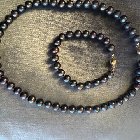 Perlekjedet fremstår som meget pent og velholdt, helt rent og uten gamle sminkerester eller parfymelukt. Et klassisk og elegant smykke som passer både til hverdag og fest.