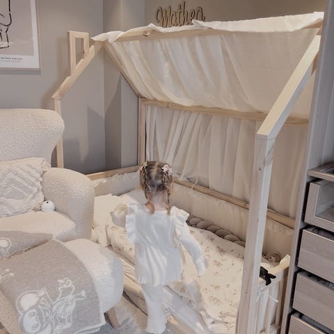 JIBBO juniorseng i grønn farge, laget i tremateriale. Passer for barn og er designet for å gi en trygg og komfortabel soveplass. Pga bena som stikker ut er senga i helhet str: