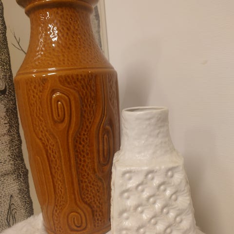 Lysestakene er ca 37 cm høye. De selges samlet til annonsert pris. Ved sending tilkommer kr 69 for porto.