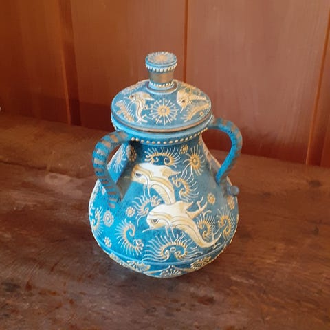 Fin LITEN krukke. Museumskopi fra Hellas. Usikker på hvor jeg kjøpte den, muligens på museet på Akropolis..