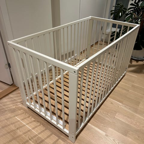 Troll Torsten Sprinkelseng med hvite ramme og trespiler. Laget i tremateriale. Passer for barn og har en moderne design med solide ben. Sengebunn kan justeres i 3 forskjellige høyder .Følger med sengehest/åpen side slik at den blir til junior seng.