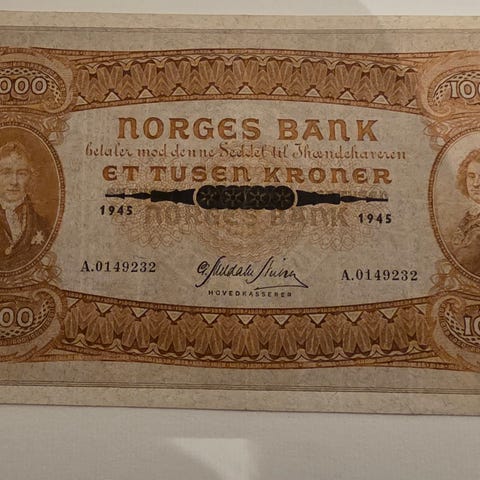 2 stk 1000 kroner sedler 1990