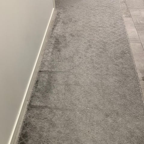 Pent brukt gulvteppe med skyer. Størrelse 70X140 cm.
