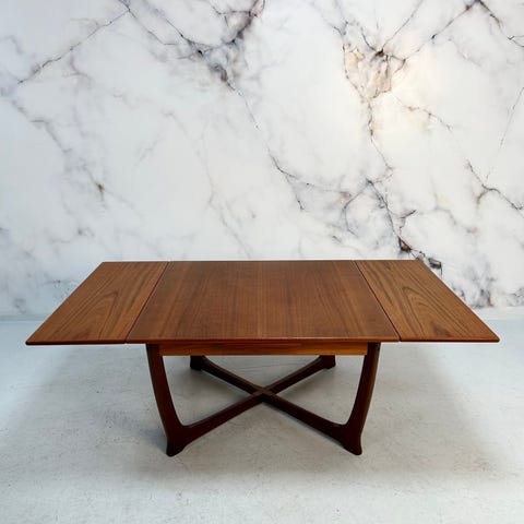 Understellet er i teak. Topplaten er flislagt med små mosaikkfliser og listet rundt.