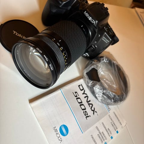 Minolta Dynax 3000i speilreflekskamera med manuell og automatisk eksponering. Kameraet har et robust design og er egnet for analog fotografering med utskiftbart objektiv. Passer for både amatørfotografer og entusiaster.