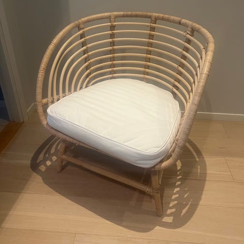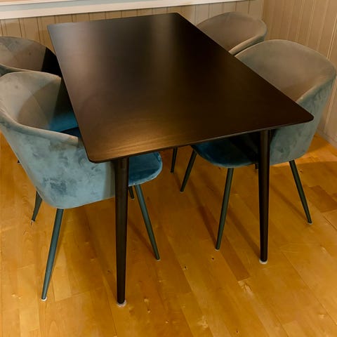 2 grå / blå stoler fra søstrene grene. Peisen er for begge