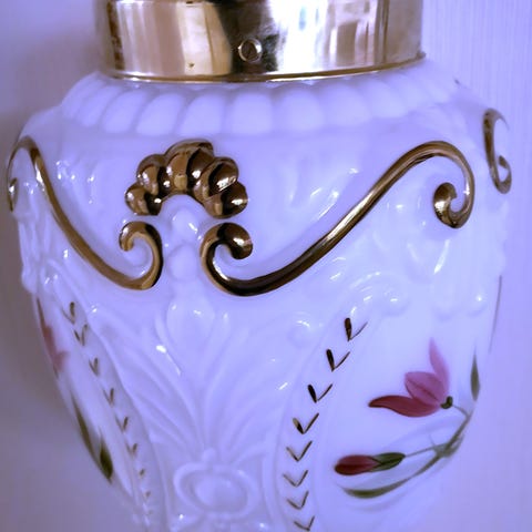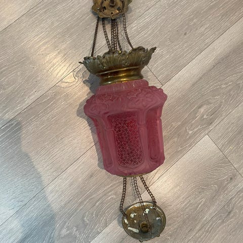 Nydelig antikk måneskinnslamper i grønt. Uten sprekker. Ca 118 cm