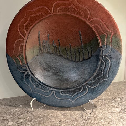 Selger et stort keramikk fat. Størrelse 33 x 33 cm. Gresk.