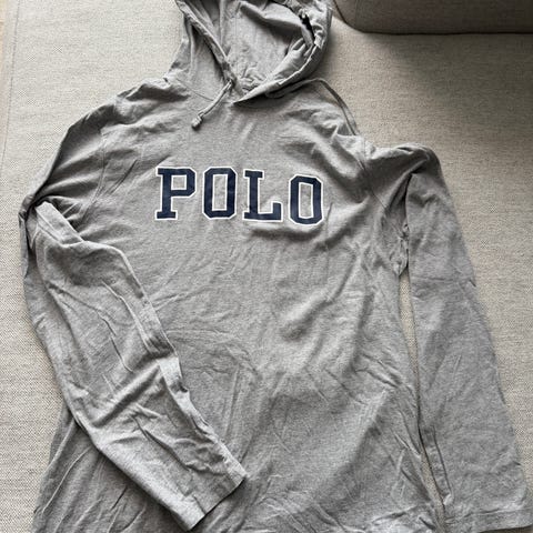 Ralph Lauren Polo hettegenser i blå farge, laget av bomull. Genseren har størrelse M. Den har hette med snøring, glidelås i front og frontlommer.