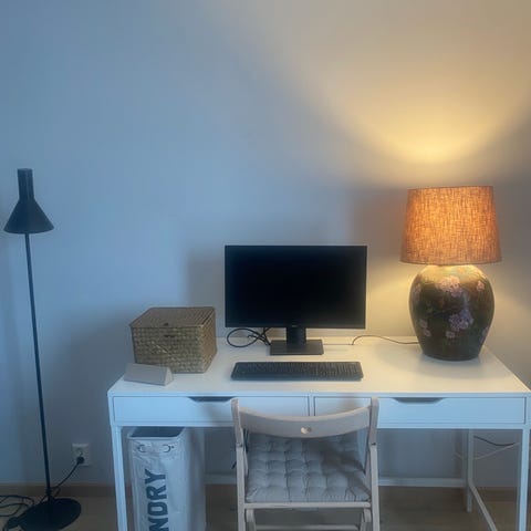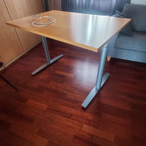 Skrivebord med hev/senk selges. Pent brukt, men den lange utstikkeren er ørlite bøyd nedover.