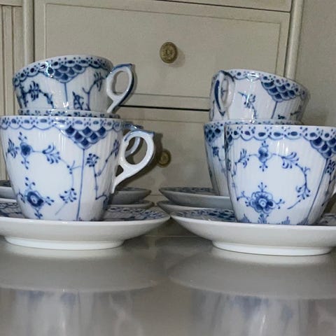 6 sett Halvblonde kaffekopper og skåler nr 719
