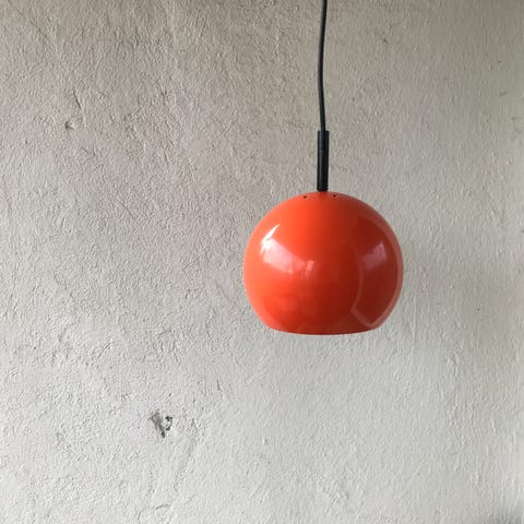 Retro tak/vegglampe.Hvit Opalin med rødt mønster-
