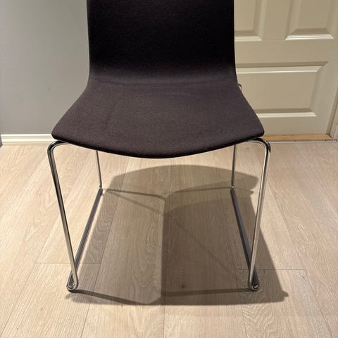 Selger 4 stk Arper Catifa 60 loungestoler i elegant rødt tekstil med krom understell. Stolene har den klassiske Catifa-comforten med bred sitteflate, god støtte og et tidløst design som passer både hjemme og på kontoret. Pent brukt og i meget god stand.