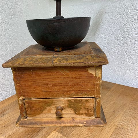 Kaffekvern selges, Fra AI: Dette er en gammel manuell kaffekvern fra Eskilstuna Stålindustri.