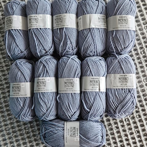 10 nøster Drops merino extra fine selges kr 300.