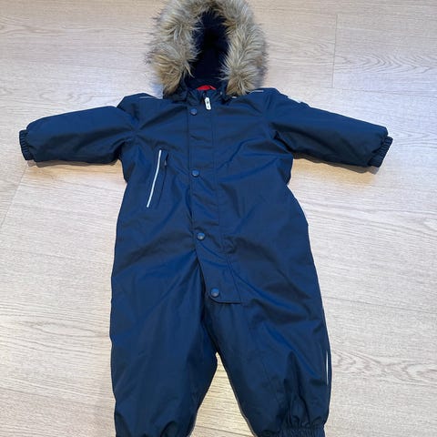 Hel og pent brukt Reimatec + dress i str 80. God og varm med fuskepels på hetten. To små flekker, (har ikke prøvd flekkfjerner)
