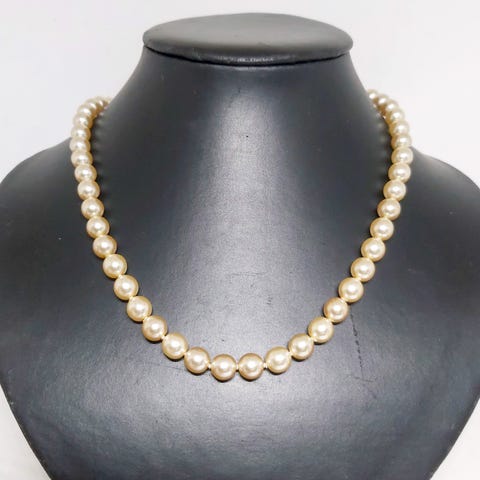 perlekjede, perler, champagnefarget, klassisk smykke, tidløst smykke, elegant smykke, vintage smykke, perlehalskjede, dame smykke, kvalitetssmykke, fest smykke, hverdag smykke, gaveidé, bryllupssmykke, sofistikert smykke, luksuriøst smykke, delikat smykke, pent brukt, retro smykke, stilrent smykke, perler 7mm, 58 cm, eksklusivt smykke, klassiske perler, feminin stil, smykkesamling, samlersmykke, vintage perler, unik gave, norsk stil