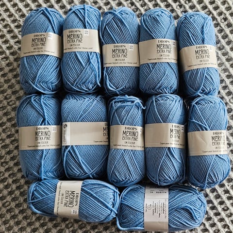 10 nøster Drops merino extra fine selges kr 300.