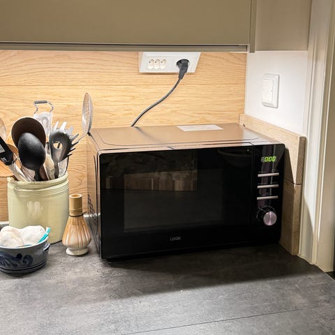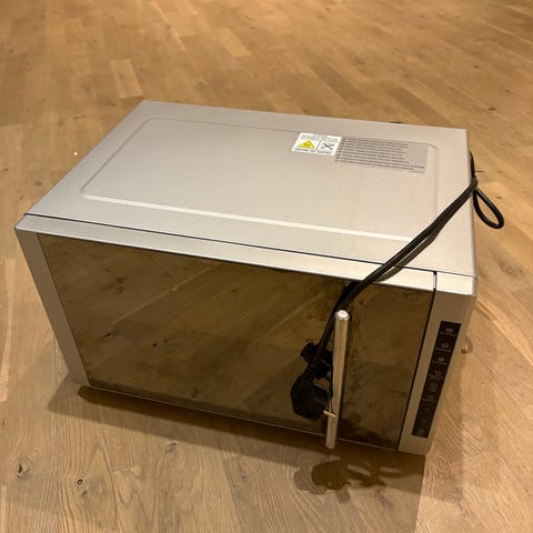 Logik mikrobølgeovn i hvit farge. Egnet til oppvarming og tilberedning av matvarer. Pent brukt.