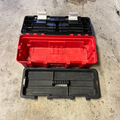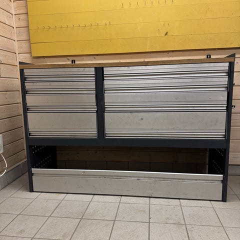 Würth verktøyoppbevaring for varebil med flere hyller og oppbevaringsrom. Systemet er laget i metall og er designet for organisering og lagring av verktøy og utstyr i varebil. Har stått i Toyota Proace