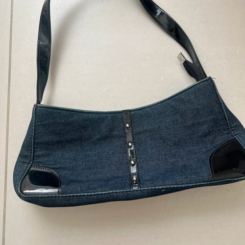 Veldig fin veske i denim stoff med diamanter på.