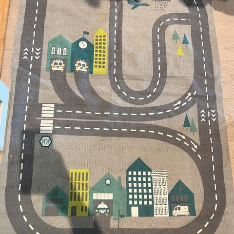 Nøytralt bilteppe til barnerom. Mål er 90x130 cm.