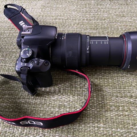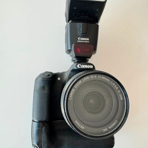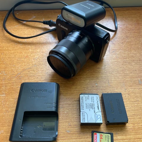 📷 Canon EOS M + lader, to batterier og Canon Speedlite 90EX