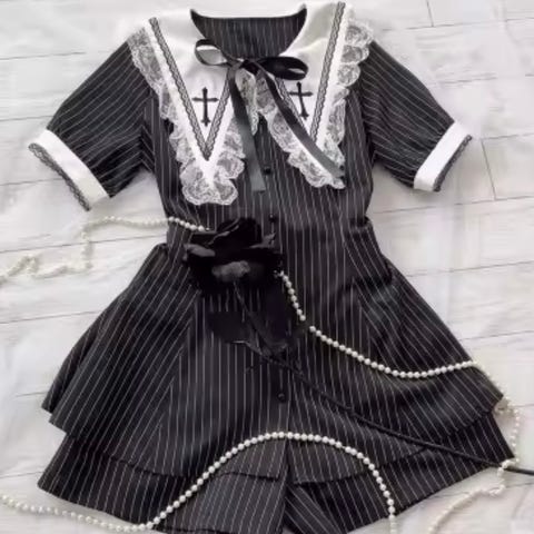 Jirai Kei kjole, gotisk svart kjole med brosje. Japansk mote. Brukt et par ganger.