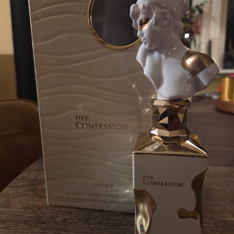 Original Lattafa Her Confession parfyme med dekorativ design. Kjøpt hos Computersalg. Som ny, bare prøvd på. Falt ikke i smak desverre. Leveres i original eske.