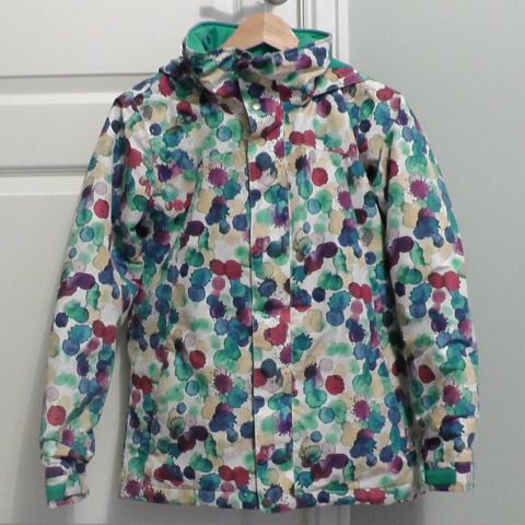 Svart og hvit alpinjakke til Herre str. L. Som vist på siste bilde er en liten detalje/hempe på ryggen borte, ingen praktisk funksjon, men vil gjøre kjøper oppmerksom på det.