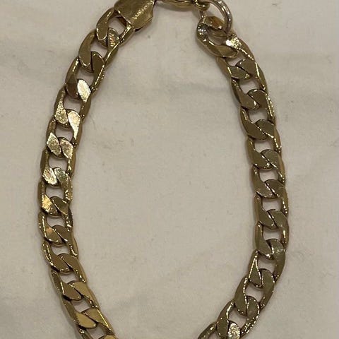 Materiale er messing/ gullbelagt kobber tråd og vokset bomullsnøre