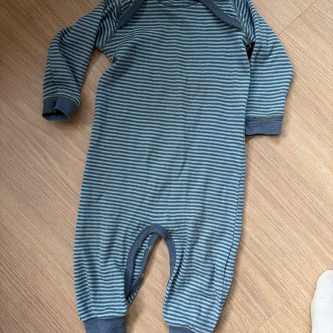 MINI A TURE fleeceheldress i størrelse 80 for barn. Dressen er grå/grønn og laget av polyester. Skikkelig fluffy og fin. Den har hette og glidelås foran, og er designet for unisex bruk.