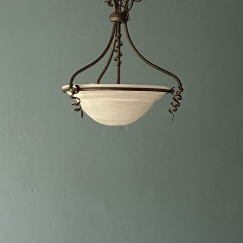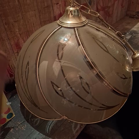 Hvit, grønn og sort opalaktig takkuppel selges. Gir fint lys.