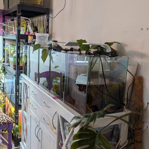 Akvarium med skap og fisk som guppy og molly og alt utstyr og dekorasjon og fisken ca 3-4 måneder og fisken helt frisk og de fisken født og oppvokst hos meg