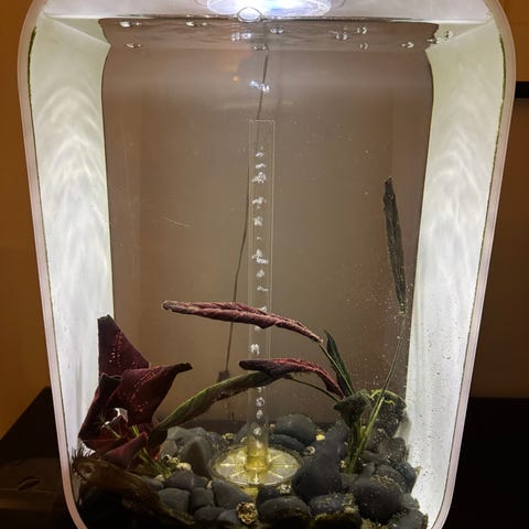 Akvarium med dekorasjoner og belysning