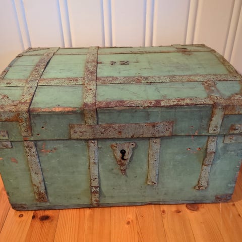 Meget pen amerikakoffert, fra Franz Schulz, Oslo - brukt til oppbevaring av klær på reise, men lite brukt og lite slitt både inni og utenpå!